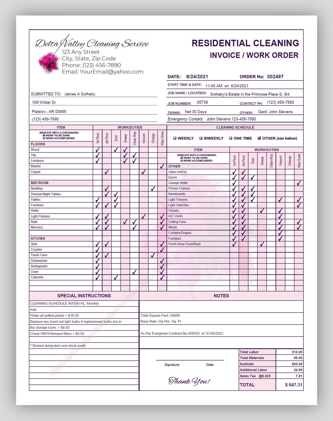 Cleaning Service Invoice, House Cleaning Invoice, Residential Cleaning ...