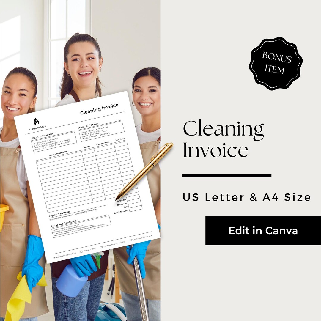 Cleaning Services Invoice Template | Fillable PDF & Canva | US Letter ...