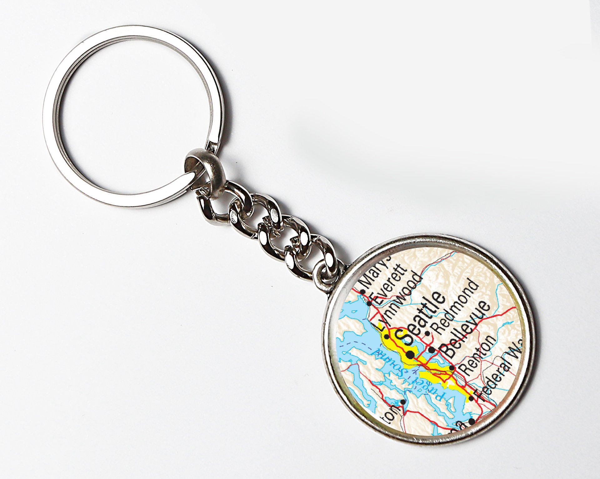 Custom Vintage Map Key Chain, Choose Your Location, Guy Gift, Keychain ...