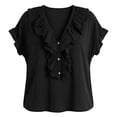 Craaazy Women Plus Size Tops Loose Fit Solid Color V Neck Ruffle ...