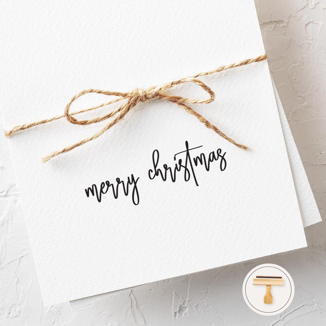 Merry Christmas Rubber Stamp, Script Stamp, Holiday Gift Tag Stamp ...