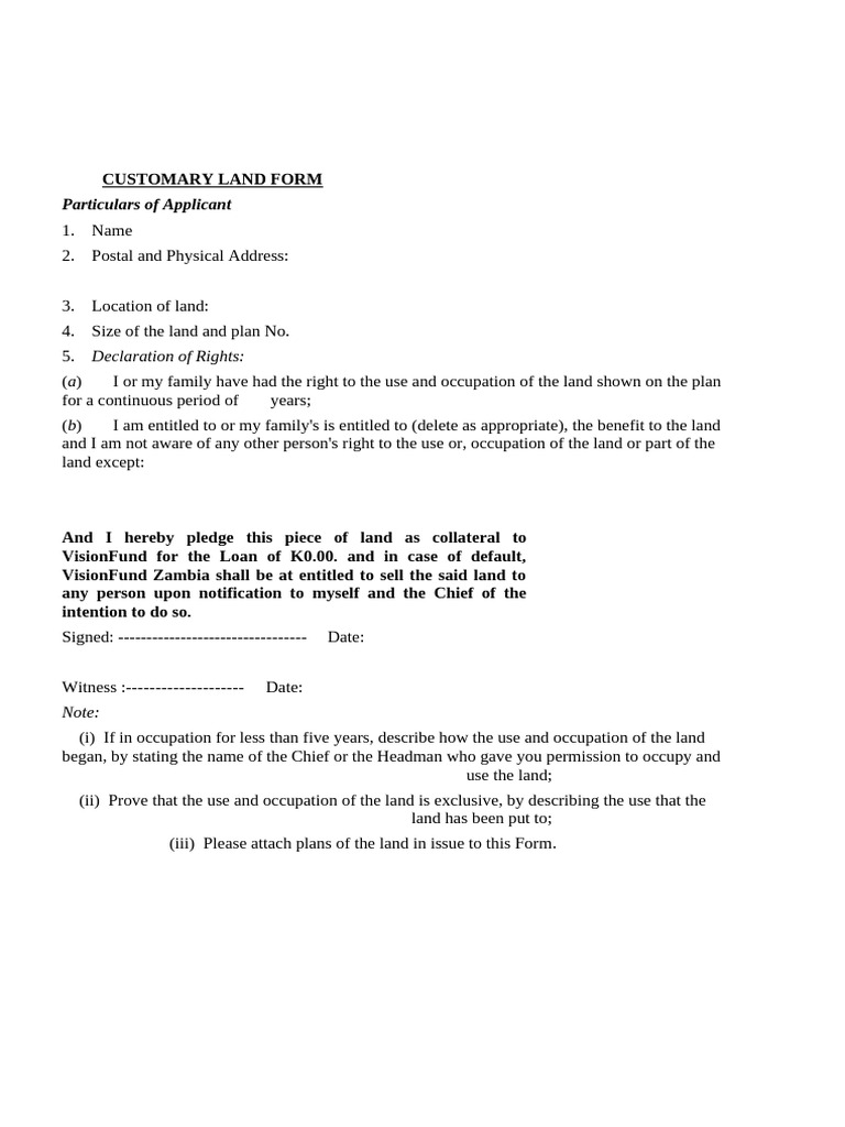 (MLH) .Land Application Form - Customary Land Rights | PDF | Social ...