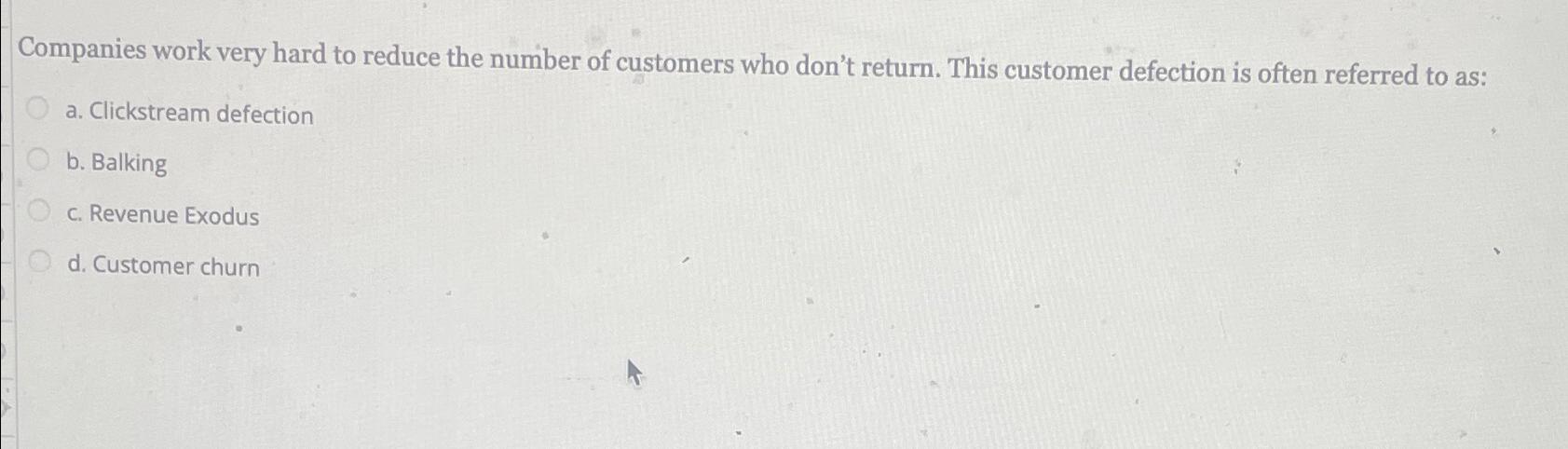Solved High customer retention is equivalent to low customer | Chegg.com