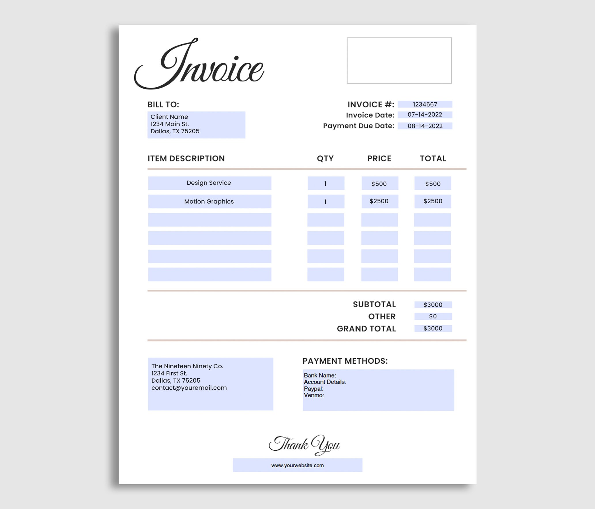 Editable Invoice Template - Custom Invoice Form - Printable Invoice for ...