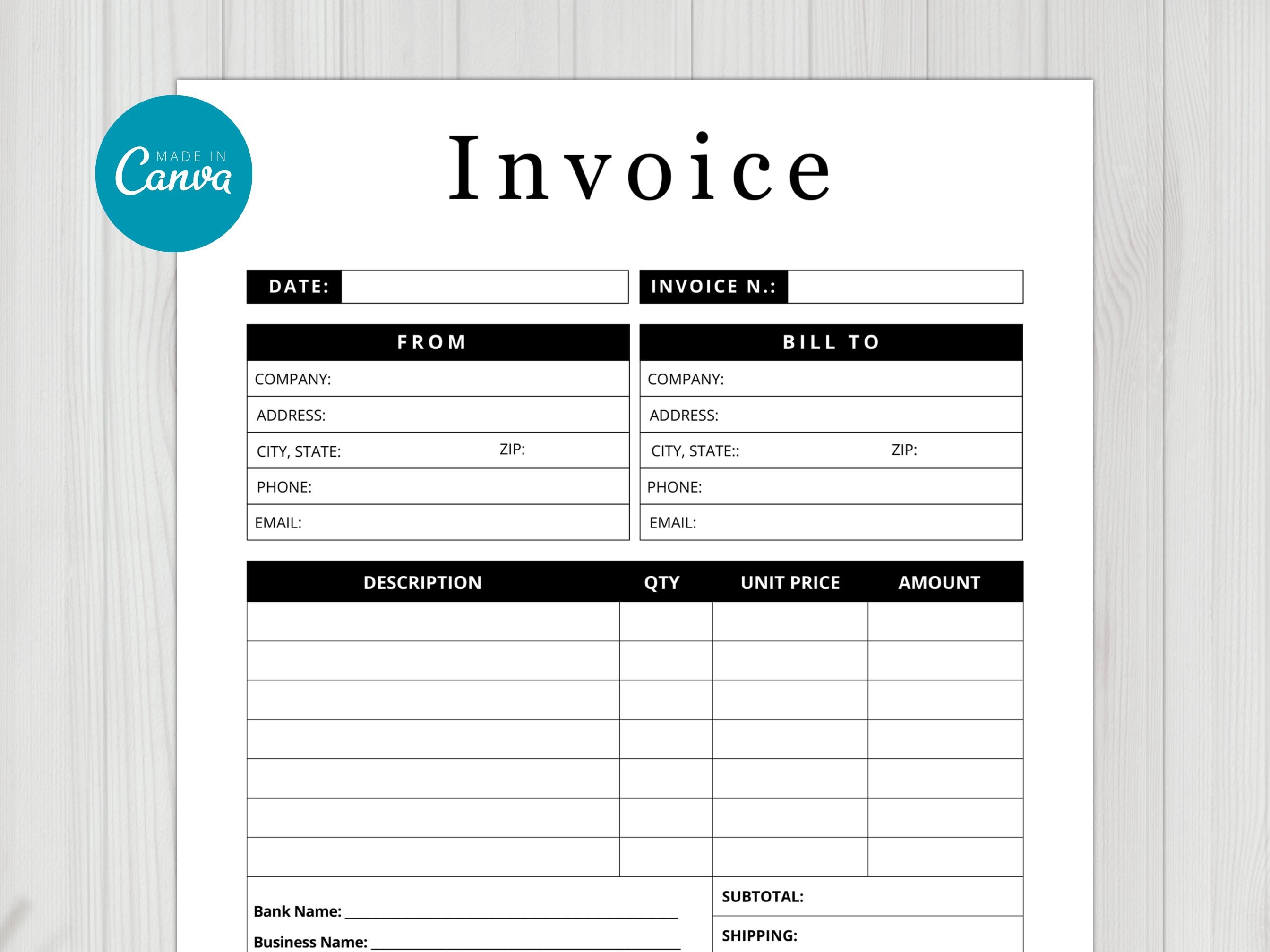 Printable Invoice Custom Form Template Editable Blank Invoice - Etsy