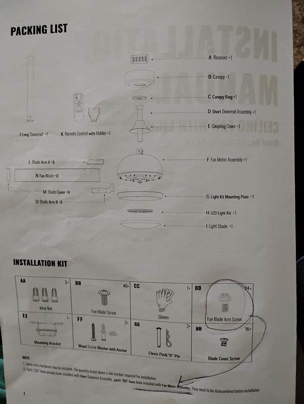 20" Ceiling Fans with Kit ,LED Light Source and Remote Control, 3000 ...