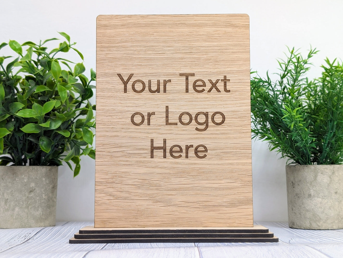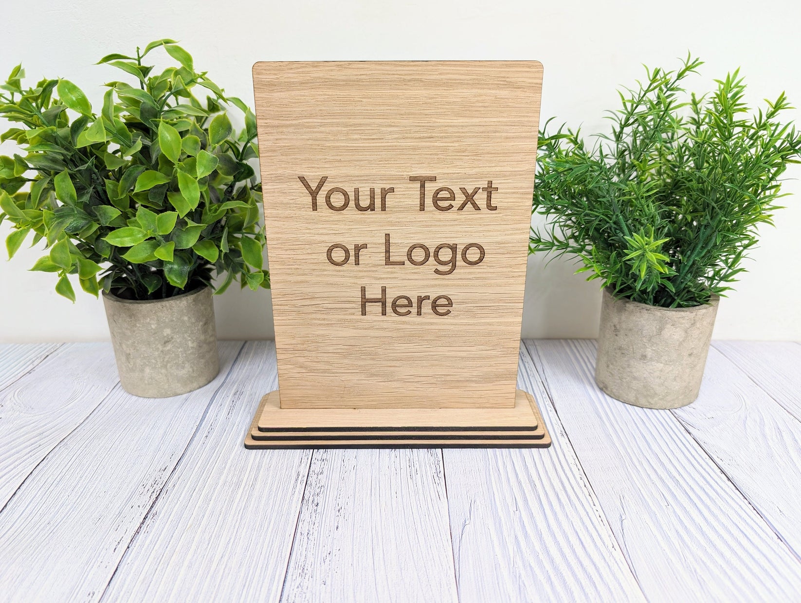 XL Personalised Wooden Table Signs - Custom Text & Logo, Freestanding ...
