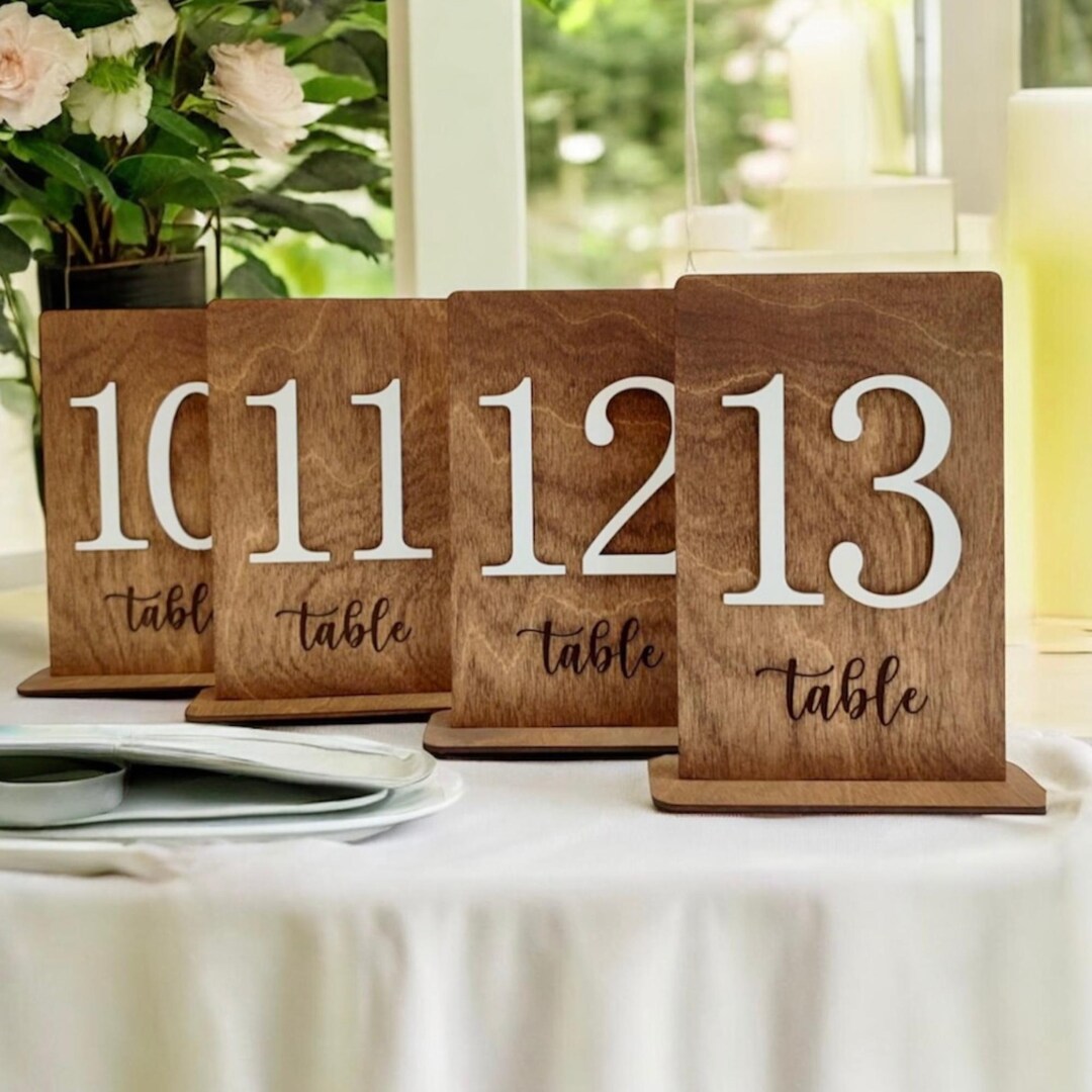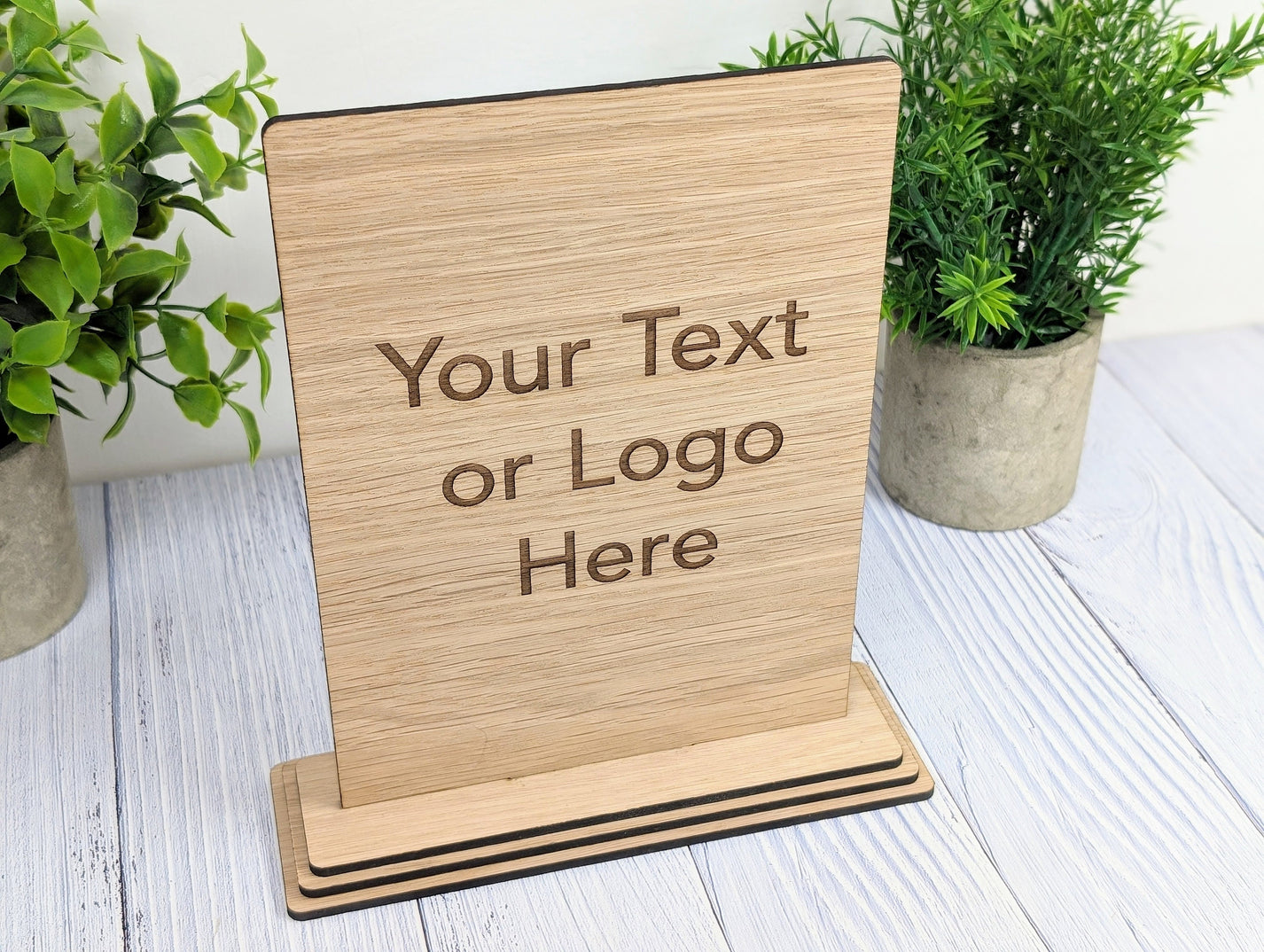 Personalised Wooden Table Signs - Custom Text, Logo, Freestanding ...