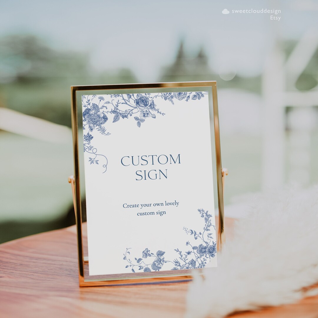 Custom Table Sign Template Dusty Blue Flower Custom Sign Steel Blue ...