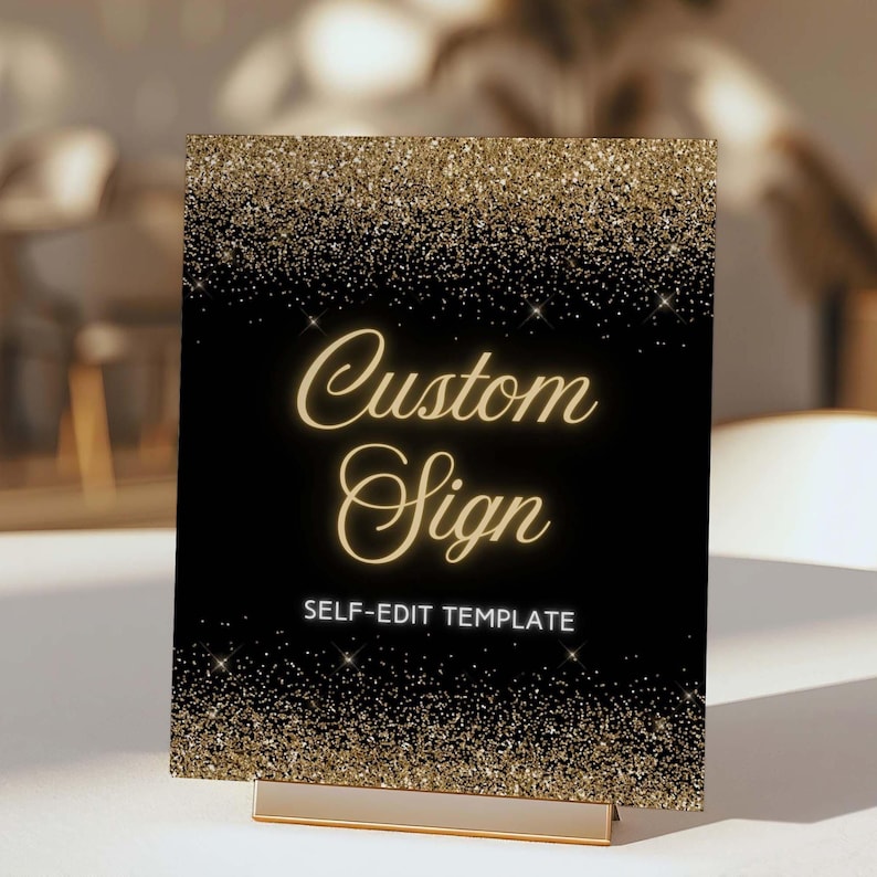 Black & Gold Glitter Custom Table Sign Template, Self-edit, Canva, BG2 ...