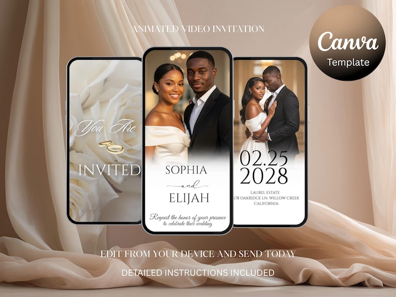 Online Wedding E-Invite, Full Customizable E Invite Card Template.