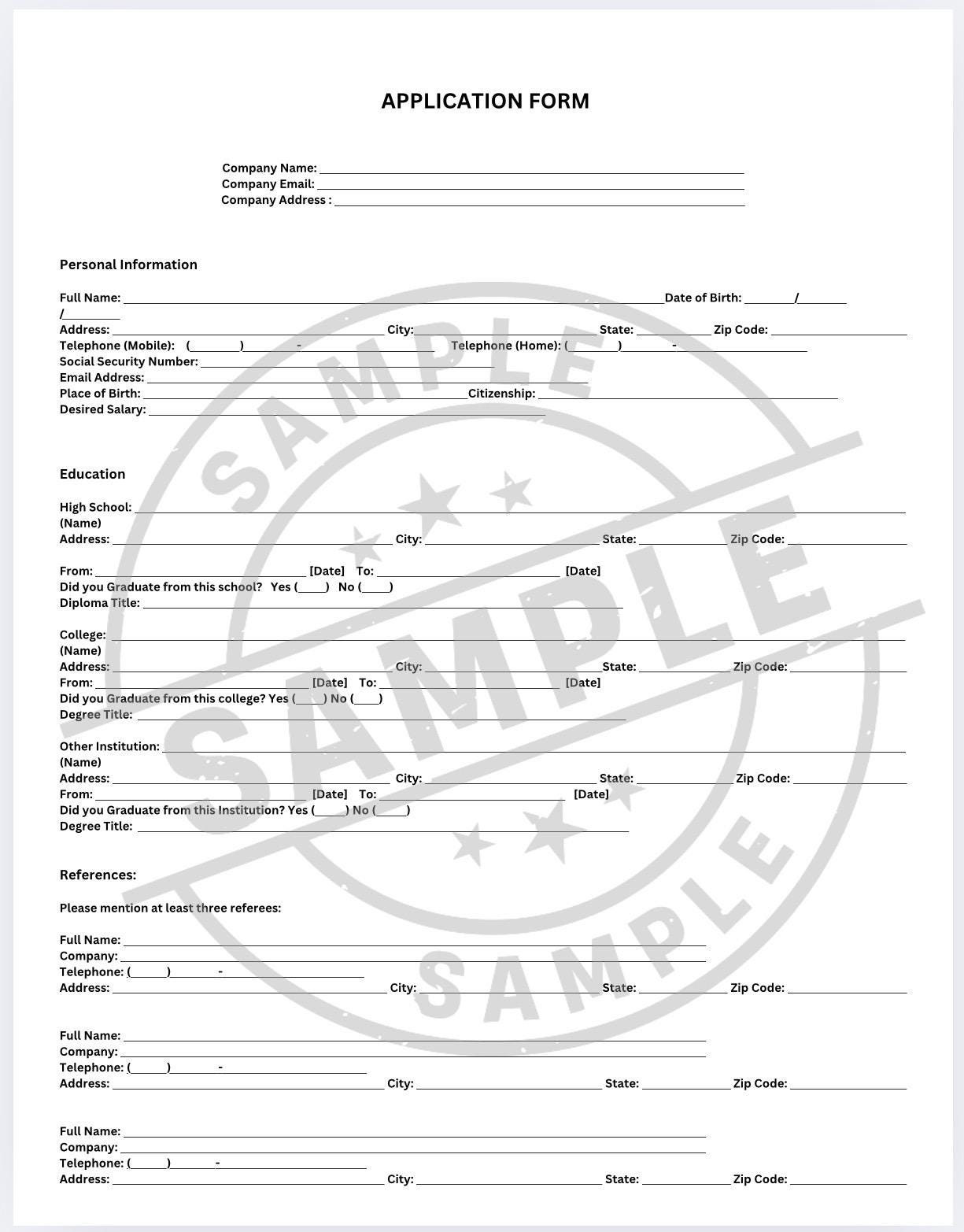 Application Form Template | Editable PDF | Instant Download - Etsy