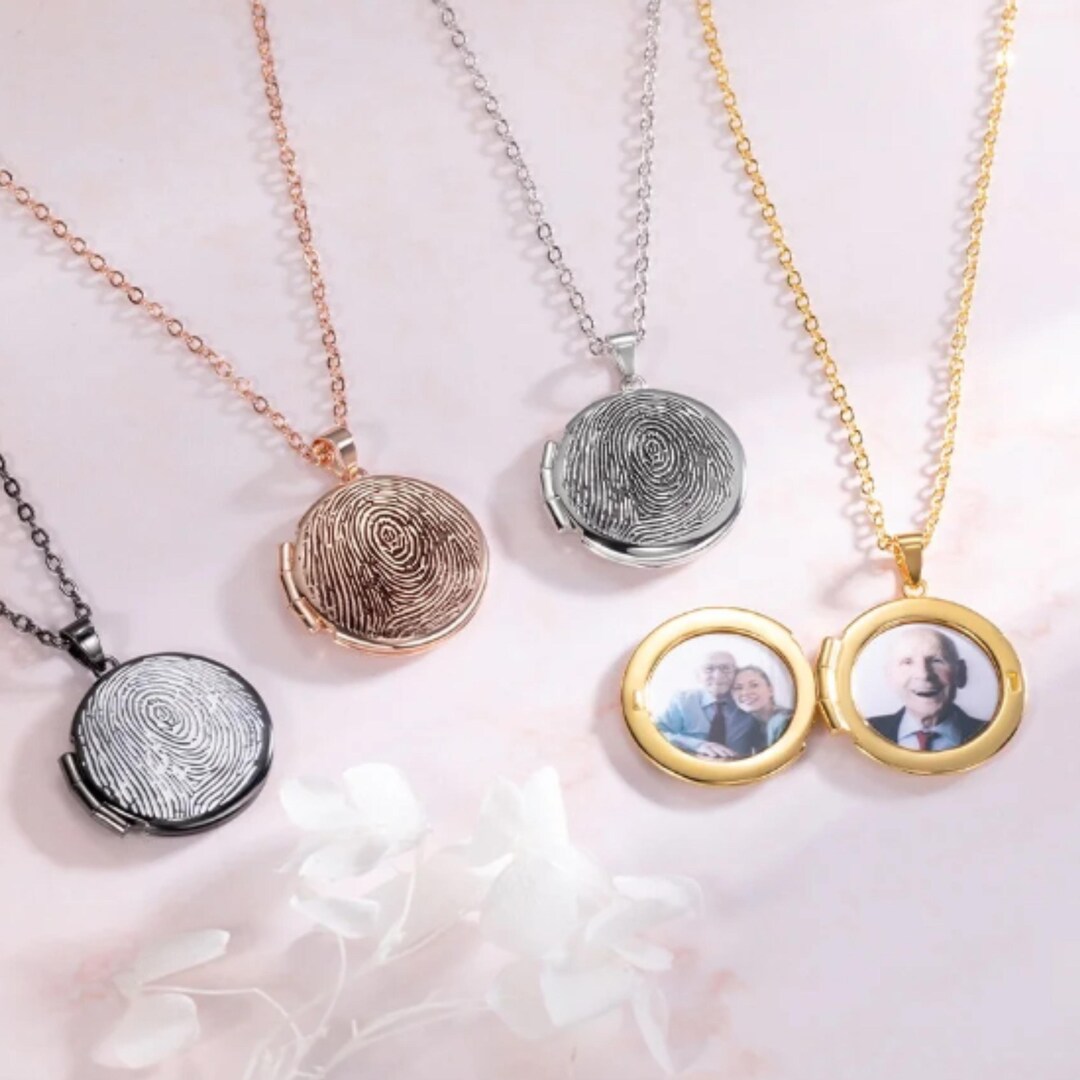 Customized Photo Locket Necklace With Fingerprint, Custom Engraved ...