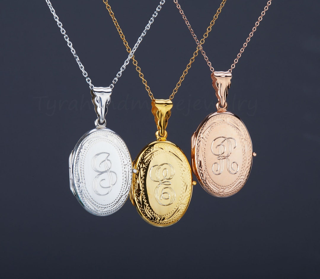 Personalized Engraved Photo Locket Necklace Gold Monogram - Etsy