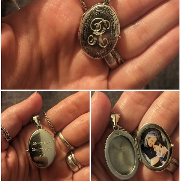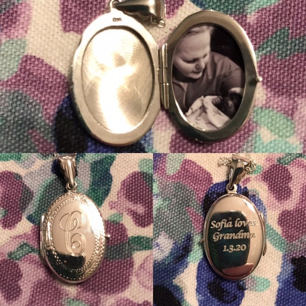 Engraved Sterling Silver Locket With Photo,personalized Locket,etched ...