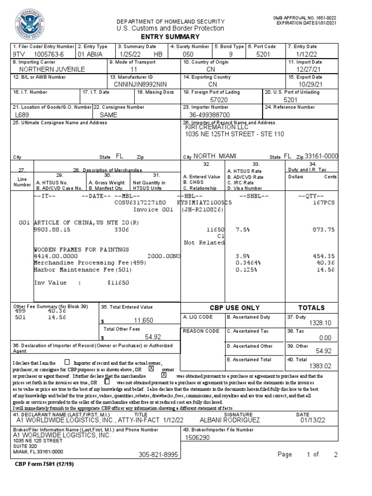 CBP Form 7501 Entry Summary - A Vital Import Document For US