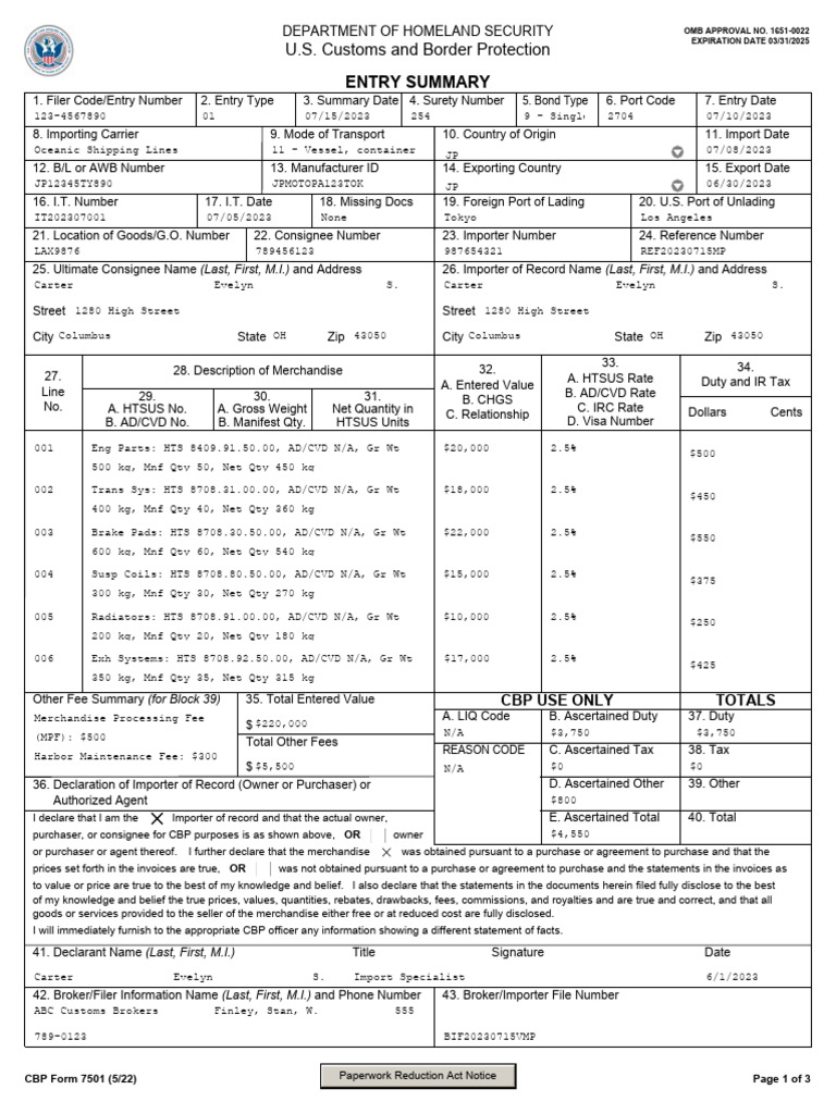CBP Form 7501 - Customs Clearance in the US | ExamineChina