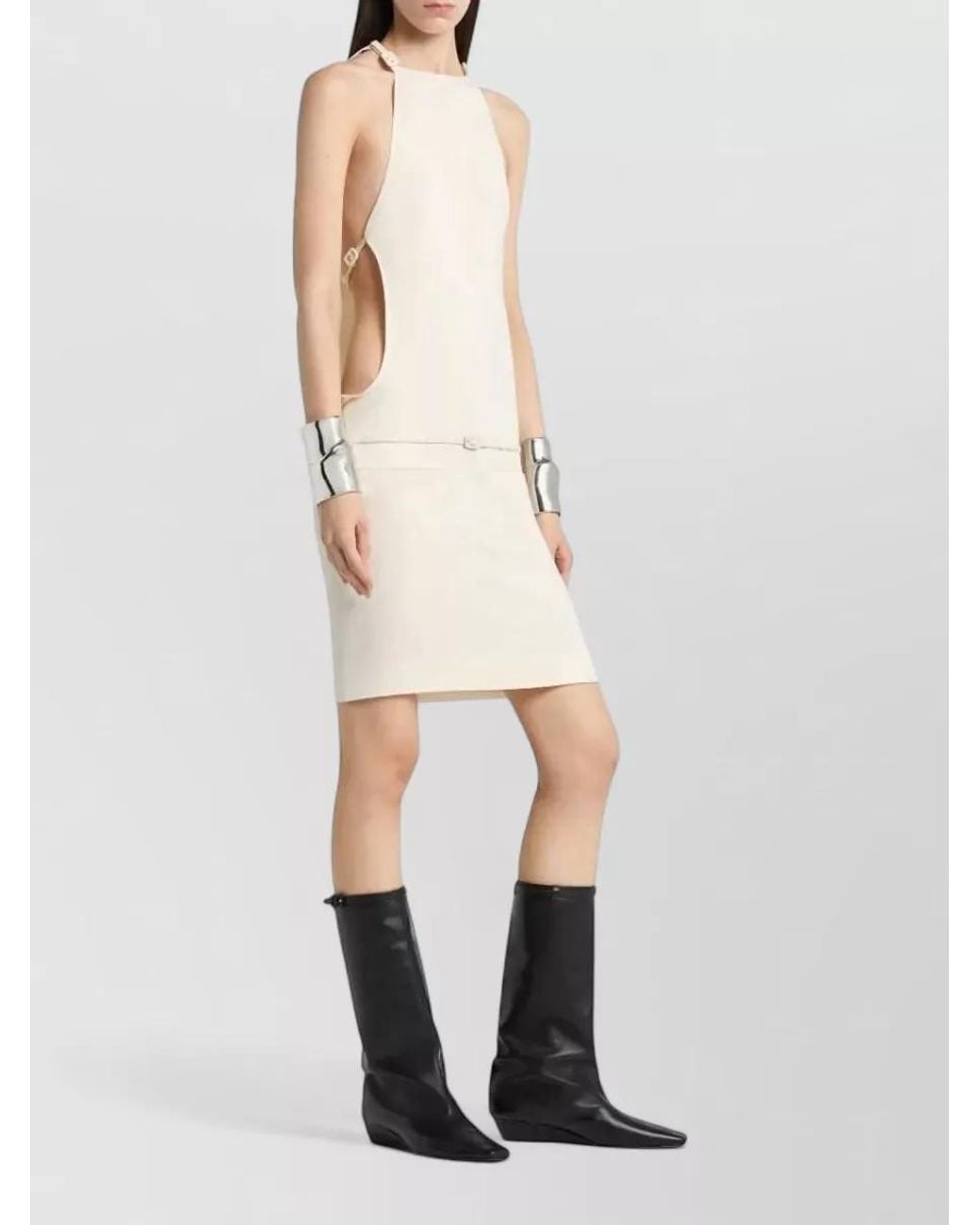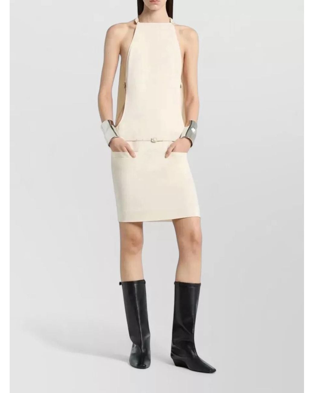 Courreges Belted Mini Dress Halter Cut Out in White | Lyst UK