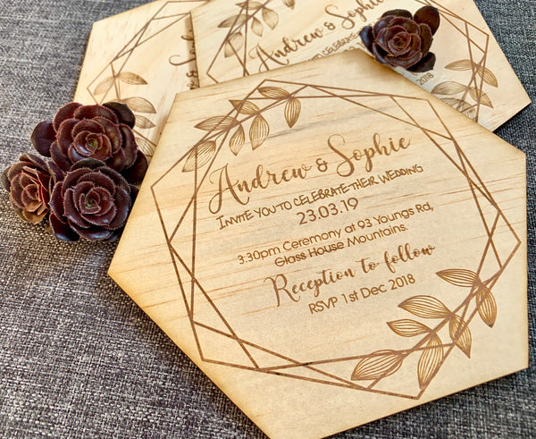 Wooden engraved Wedding Invitations – Totally Cut Out
