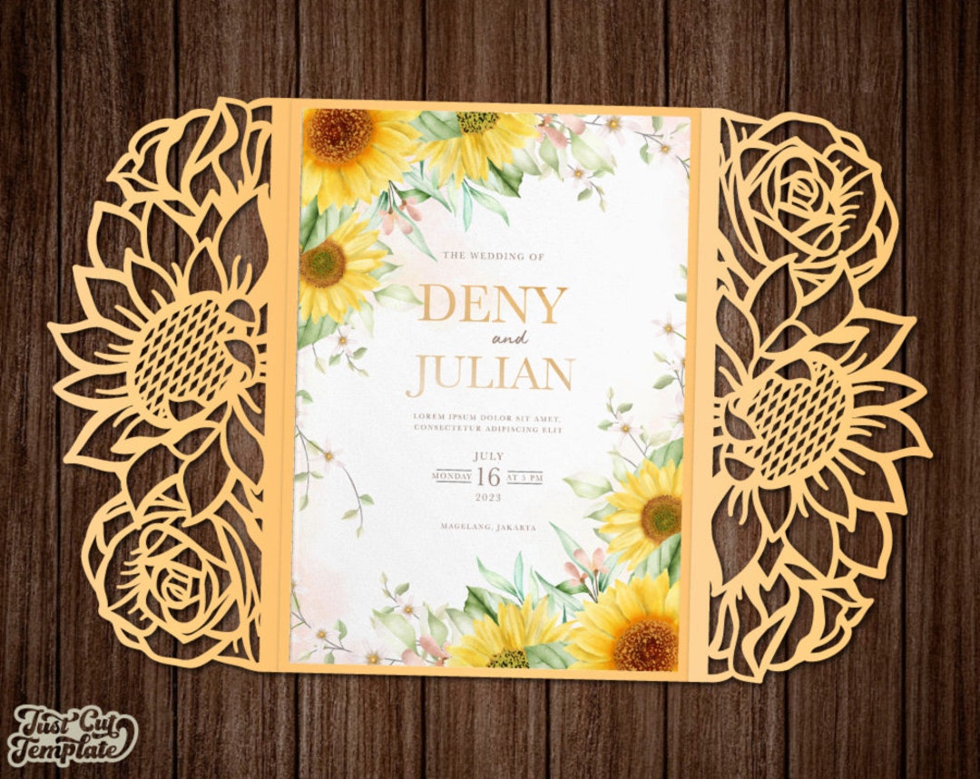 Cutout Wedding Invitation SVG With Sunflowers and Roses, Cricut Gate ...