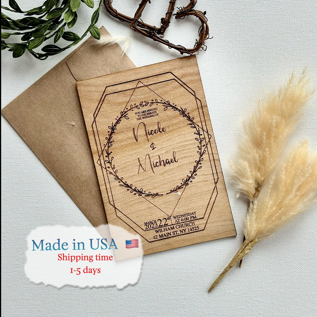 Wood Wedding Invitation Set, Laser Cut Wedding Invitation, Wedding ...