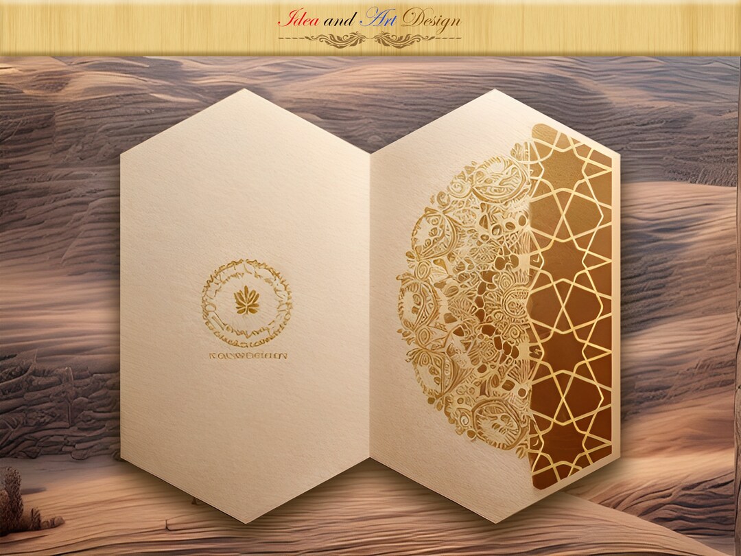 Golden ‘V’ pull-out laser-cut invitation card - Invitationcards
