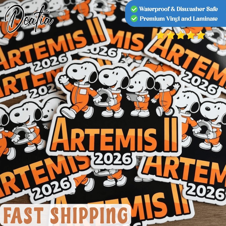 Artemis II Space Dog Astronaut Sticker, Cute Beagle Vinyl Decal, Moon ...