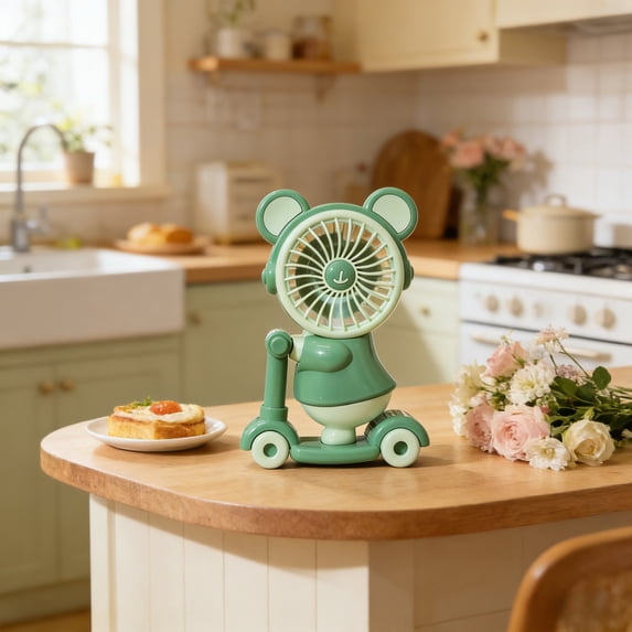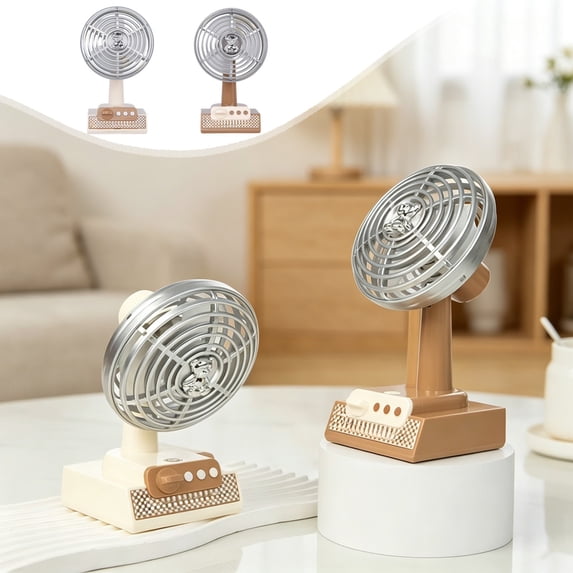 Cream Bear Print 3-Speed Quiet Retro Desktop Fan, Cute Cartoon USB ...