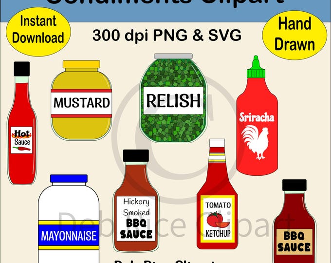 Condiment Clipart, Sauce Clipart, Mustard Clipart, Ketchup Clipart, Bbq ...