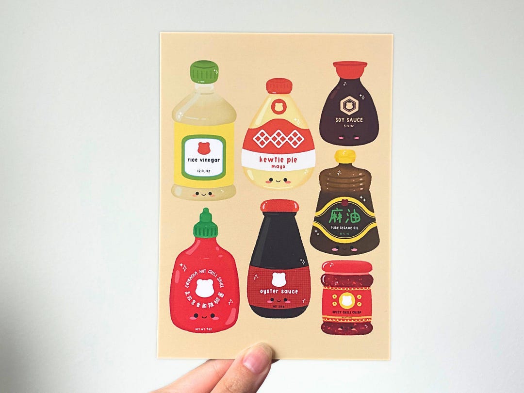Asian Condiments and Sauces Art Print 5x7 | Digital Illustration | Cute ...