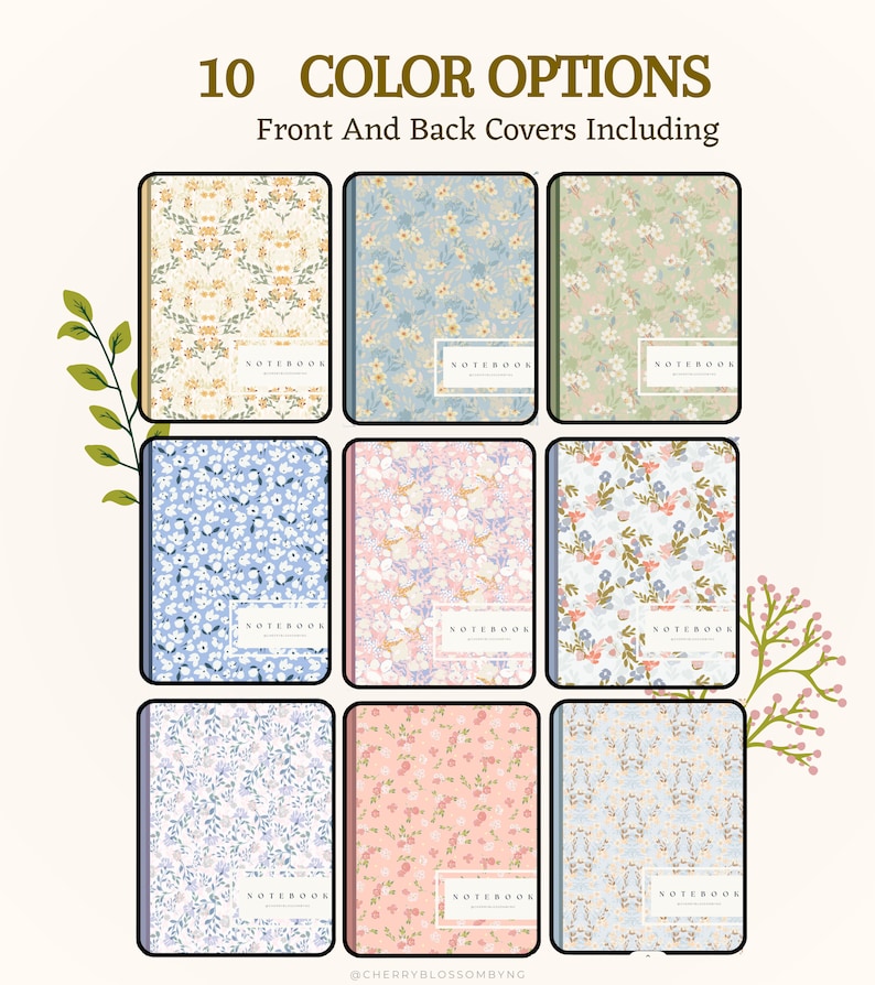 Floral Digital Notebook Covers: Pastel Minimalist Design (digital ...