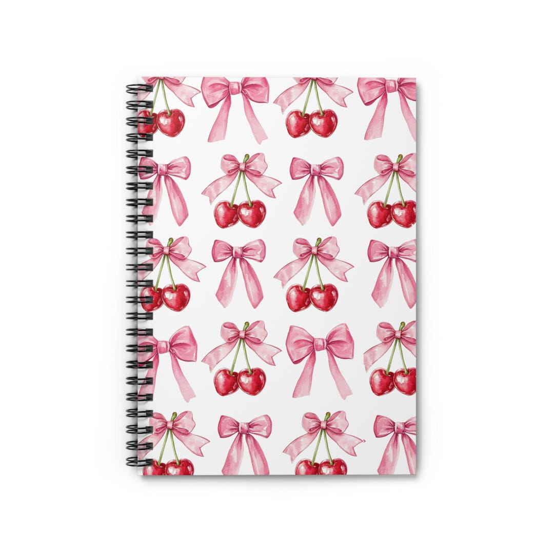 Cherry Coquette Cute Spiral Notebook, Bow Aesthetic Journal, Stylish ...