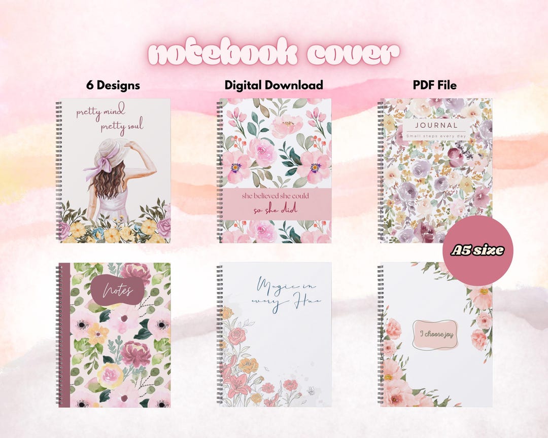 Floral Notebook Printable Covers, Girly Notebook Template, Digital ...