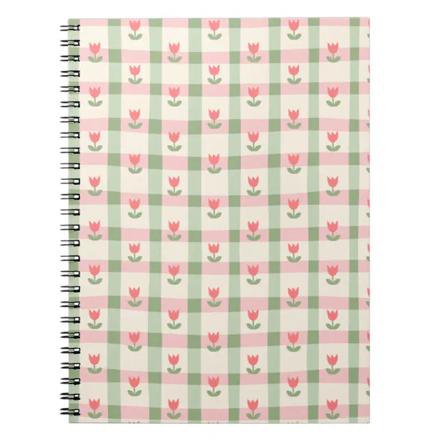Cute Tulip Checkered Pattern | Pastel Floral Notebook | Zazzle