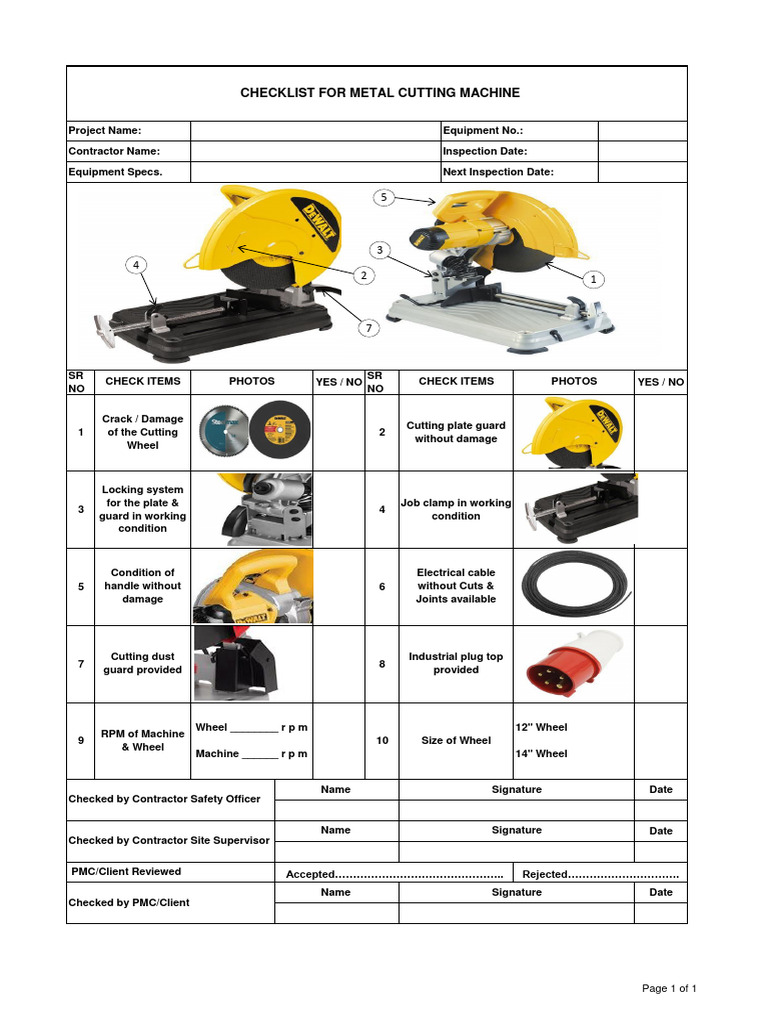 Cutting Machine Inspection Checklist Pictorial | PDF