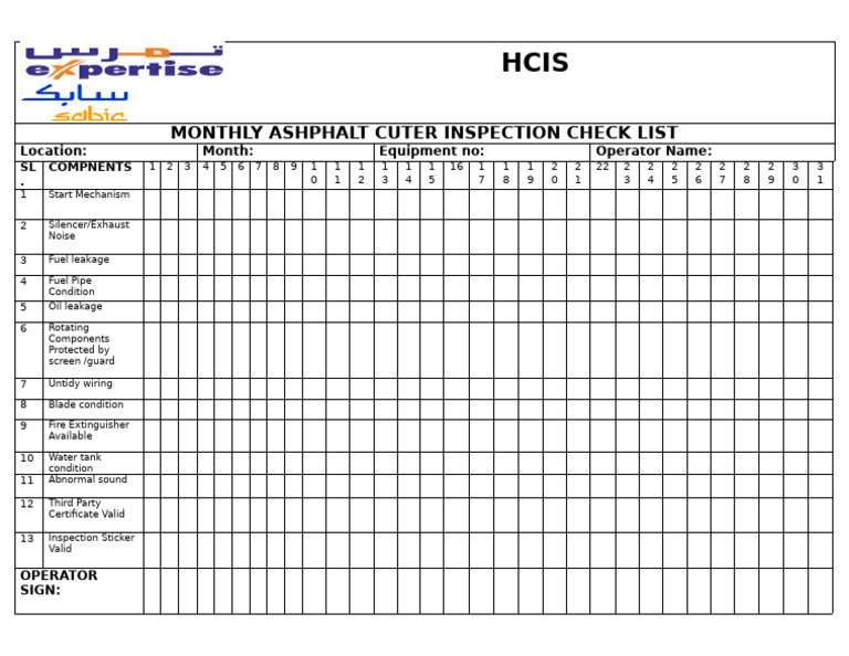 Monthly Asphalt Cutter Inspection Checklist | PDF | Business | Computers