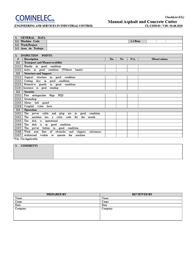 CHECK LIST Cortadora de Concreto 1 | PDF