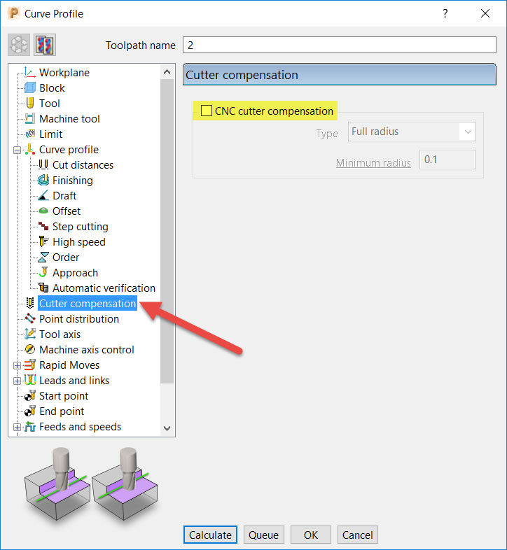 How to write cutter compensation to NC code within PowerMill