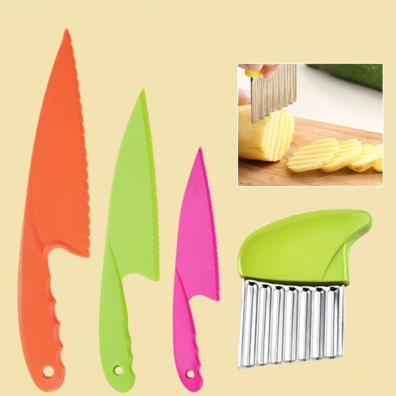 4pcs Kids Kitchen Knife, Plastic Serrated Edge Kids Knife Set With ...