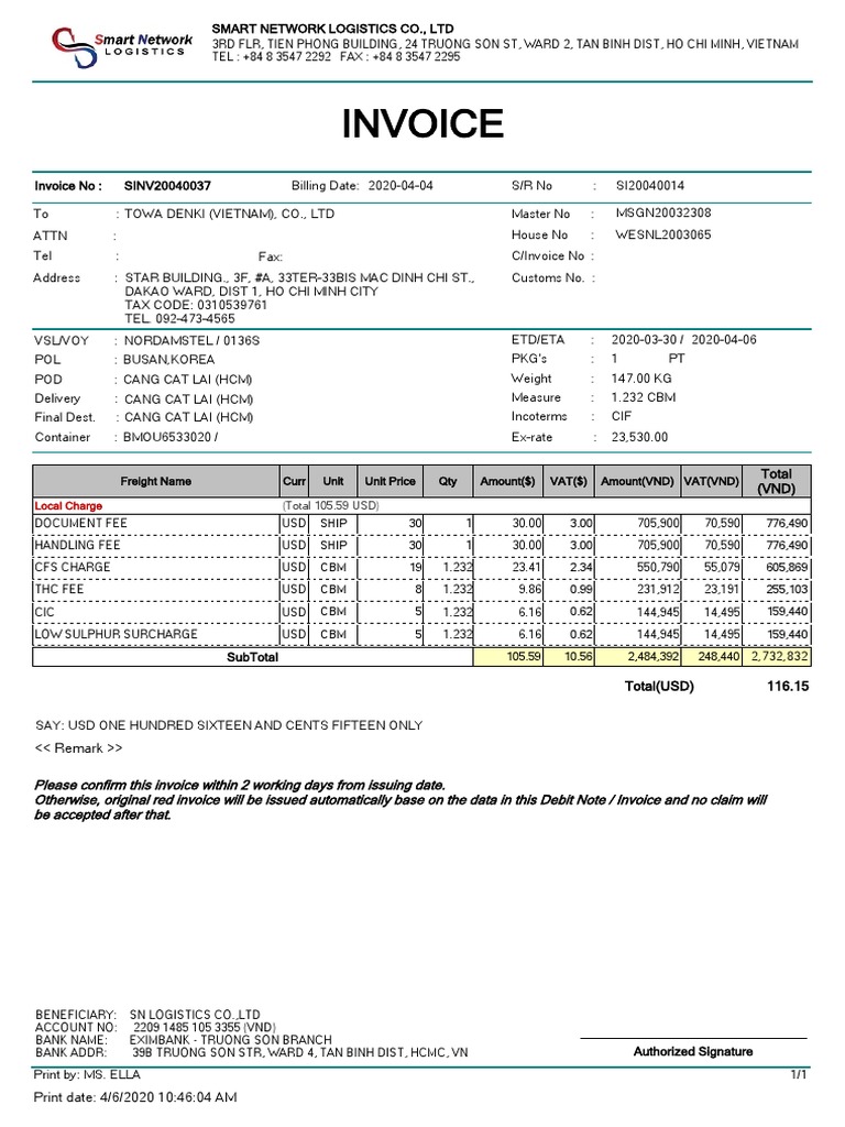 Invoice: Vat (VND) Amount (VND) VAT ($) Amount ($) Qty Unit Price Unit ...