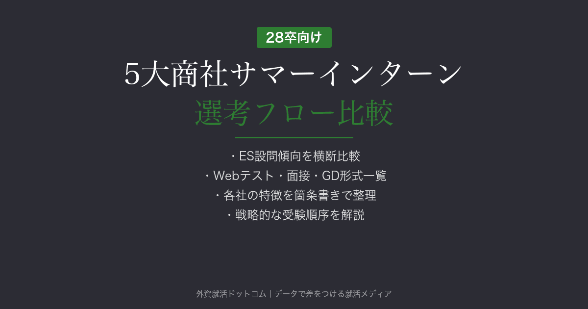 【28卒】5大商社サマーインターン選考フロー比較|三菱商事・三井物産・伊藤忠・住友商事・丸紅 | 外資就活ドットコム