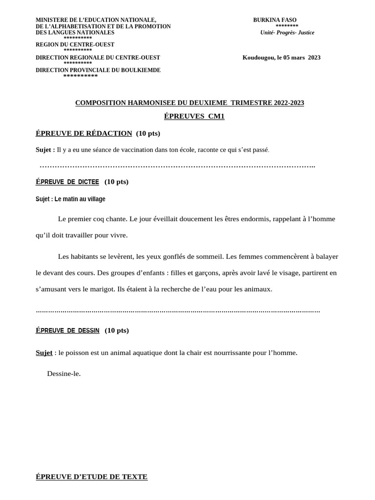 Composition Harmonisée Niveau Provincial Deuxième Trimestre 2022-2023 ...