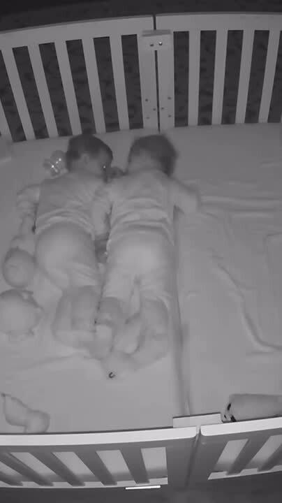 Twins Cuddle in Their Cot