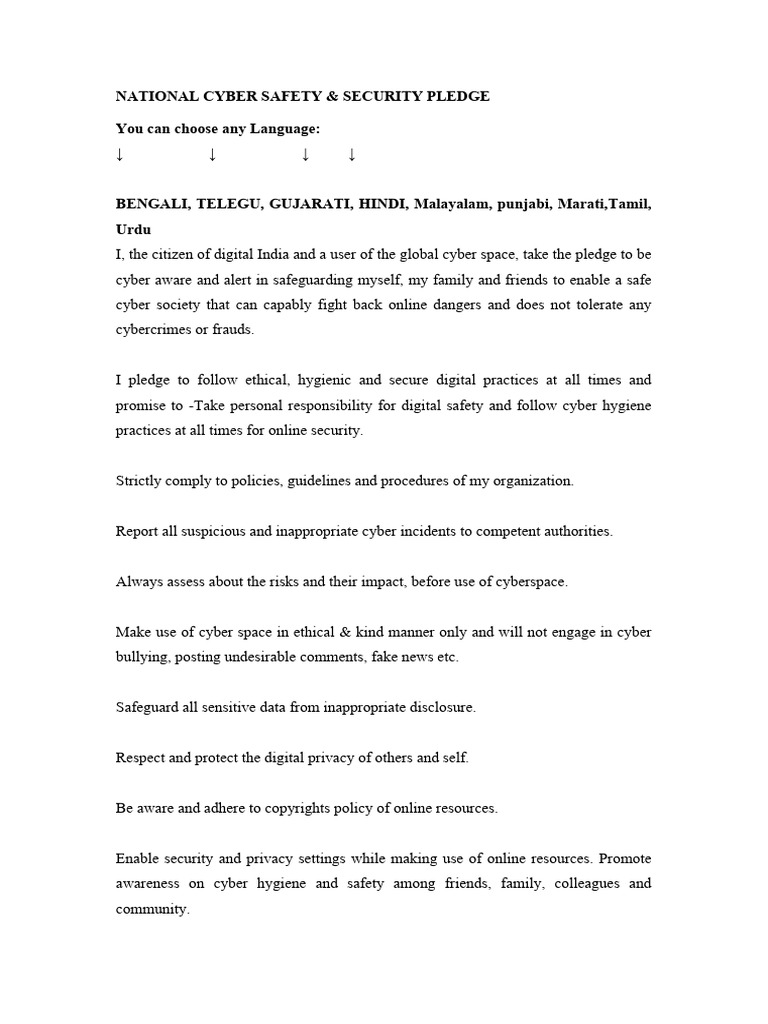National Cyber Safety & Security Pledge | PDF