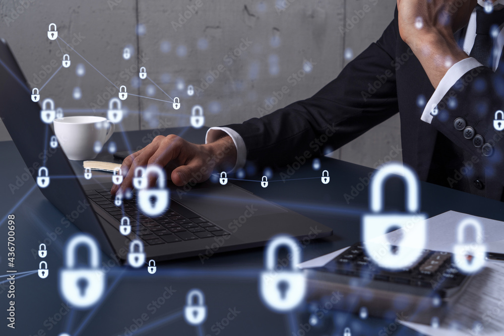 Premium AI Image | Closeup man hands Cyber security system data ...