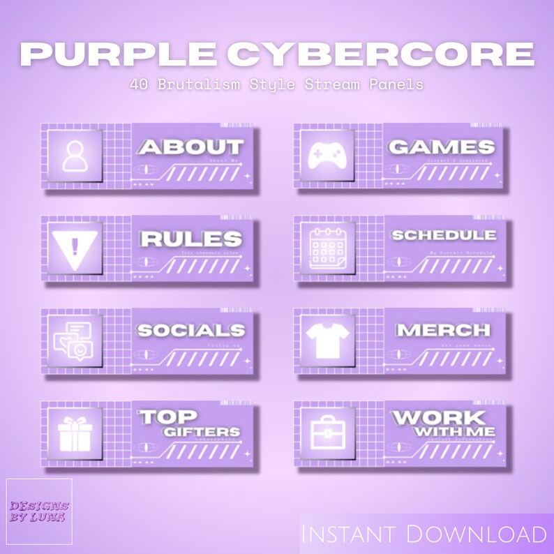 Purple Cybercore Brutalism Animated Stream Overlays Cyber Y2k Butterfly ...