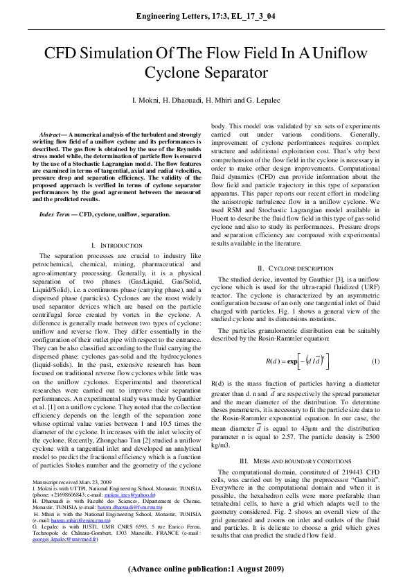 (PDF) CFD Simulation Of The Flow Field In A Uniflow Cyclone Separator