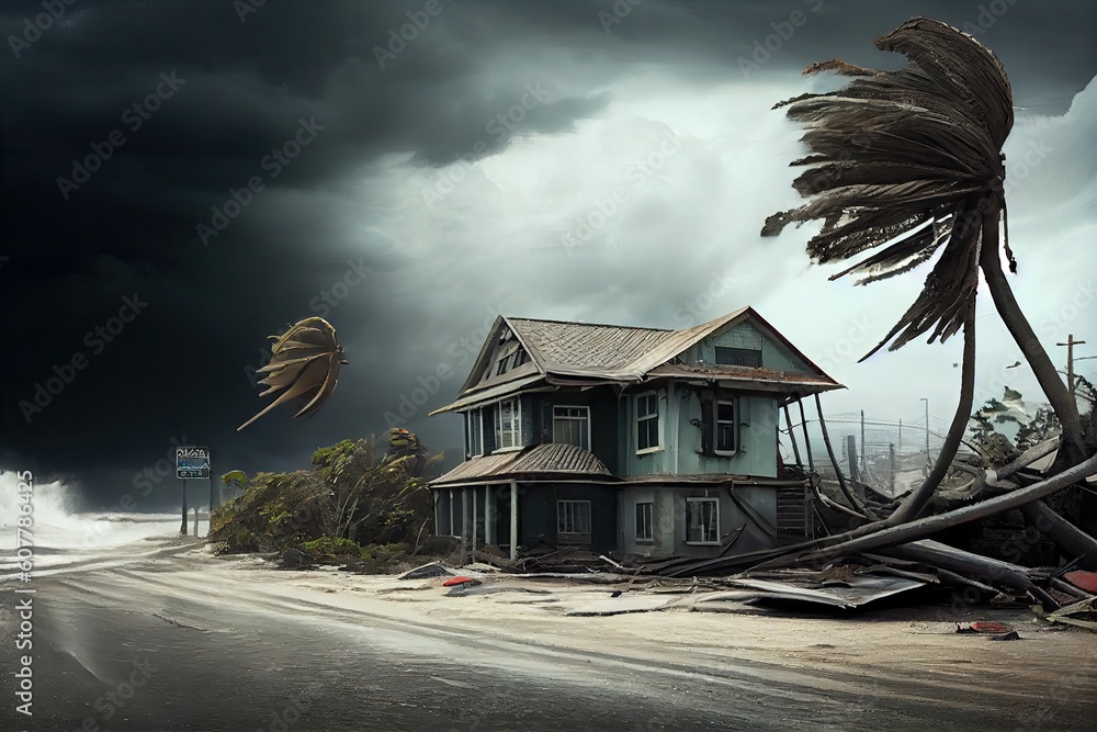 tropical cyclone with powerful winds and rain, bringing destruction to ...