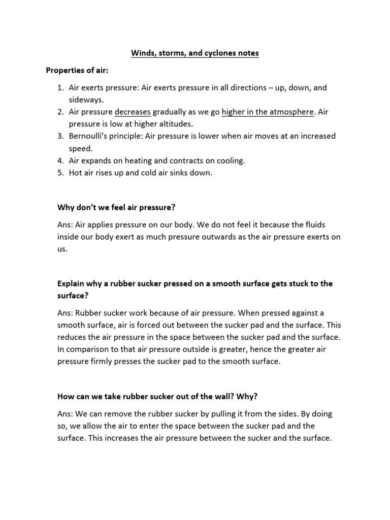 Winds, Storms and Cyclones Notes | PDF | Pressure | Atmosphere Of Earth