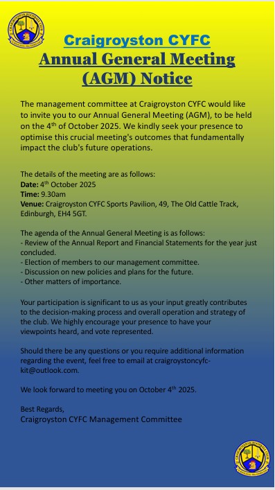 Craigroyston CYFC AGM – The NEN – North Edinburgh News